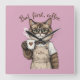The adorable coffee cat invites you for a cup of coffee. With small black glasses, an apron, and a steaming cup in one paw — who could say no to such a cutie? And that heart on the coffee cup? Simply charming. Like cats? Or maybe coffee? This one’s for you!