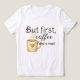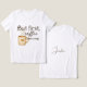 Coffee lovers and nap enthusiasts unite! This latte beige tshirt with espresso brown text reads "But first, coffee (and a nap)." Perfect humorous gift for caffeine addicts who also love their sleep. Ideal bedroom, reading nook, or coffee bar decor. Cozy color palette complements any interior while adding personality and charm to your relaxation space.