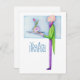 Ein Butler, der eine Einladungskarte auf einem Tablett mit einer Blume in einer Vase ausstellt. Ideal für jede Art von Einladung zu einem Party, Abendessen oder besondere Anlass, oder nur als Notiz zu sagen Hallo oder danke!