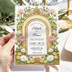 Inspiriert von Vintagem europäischen Charme, bietet diese Hochzeitseinladung einen anmutigen Gewölberahmen, umgeben von üppigen Gartenfloralen in sanftem Rosa, Buttergelb, Elfenbein und Salbei grün und erinnert an das Gefühl eines eleganten Frühlings- oder Sommergarten in voller Blüte. Der zentrierte Bogen zeichne natürlich auf Ihre Hochzeitsdetails, während der Blumenrahmen Weichheit und Farbe verleiht. Dieses Design ist ideal für Paare, die eine Hochzeit mit Blumenmotiven, Gartenanlagen oder Anwesen im Freien planen.