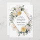 Embrace the romance of a blooming secret garden with this Butter Yellow And Gold Wedding Invitation. This design is a masterpiece of soft colors, featuring an abundant arrangement of creamy white roses, delicate butter yellow dahlias, and soft sage foliage.