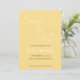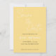 Einfache Hochzeit im Stile rette den aktuellen Einladungen, die mit einem weißen, stilisierten Skript auf einem trendigen, buttergelben Hintergrund versehen sind. Bearbeiten und ersetzen Sie Namen, Datum und Position mit Ihrem eigenen. Wählen Sie Ihre Einladungsgröße und Ihren Papierstil aus.