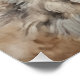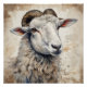 Ein Schaf mit detaillierter Wolle und ausdrucksstarken Augen wird vor einem weichen, verschwommenen Hintergrund dargestellt. Die Naturfarben verstärken das lebendige Aussehen der lockigen Fleece.