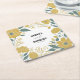 Eine gelbe Farbpalette Set dieser Hochzeit Untersetzer abgesehen von der Erholung. Das Design ist mit einem modernen Blumenstrauß gestaltet und Sie können den gesamten Text anpassen. Verfügbare Koordinationsgegenstände.