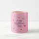 Happy Mother's Day two tone coffee mug with floral and butterfly pattern on a plain pink background.