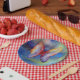 Schönes Gelb, Rot, Blau, Aquarell zeichnend - Schmetterling.