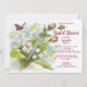 Eine Brautduscheinladung mit einem Vintagen Gemälde eines Schmetterlings mit Lilie der Tal-Blume und Rose.