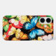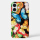 Farbenblauer Schmetterling auf abstraktem Hintergrund.