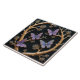 A square tile with a dark green background, featuring a raised design of golden branches and purple butterflies. The branches curve around the edges of the tile, with small, stylized pine needles extending from them. Three purple butterflies are perched on the branches, each with intricate wing patterns and delicate antennae.