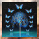 Schmetterlinge fliegen von einem blauen Kristallbaum