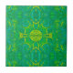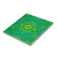 Keramik Kachel mit skurrilen arabischen Muster voll von Sommervibes. Stilisierte Blume, Schmetterlinge, Baumzweige und Solarzellen. Vintag / ethnisch / böhmisch / boho / hippie / 70er / Newage Stil. Gelbe und grüne Farben, handgezeichnete Pastellstruktur. Farbpalette: Meeresgrün, Goldene Gelb, Aquamarine, Atlantis Chartreuse. © Clipso-Callipso / Julia Khoroshikh #clipsocallipso #mandala #floralmandala #summervibes #bohemian #clipsocallipso #zazzlemade #ceramictile #homedecor #walldecor