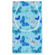 Diese Geschenktasche ist perfekt für jeden Anlass, gezeigt mit einem niedlichen blauen Schmetterlingsdruck. Glossy Shown Passen Sie dieses Objekt an oder kaufen Sie, wie es ist.