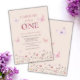 Machen Sie Ihrem kleinen Mädchen zum ersten Geburtstag unvergesslich mit dieser wunderschönen, rosa blühenden Party Einladung. Das Design ist böhmisch inspiriert und mit hübschen Aquarellfarben-Wildblumen und Schmetterlingen ausgestattet. Verwenden Sie die Entwurfstools, um den Text anzupassen.