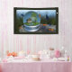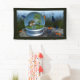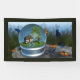 In einer "Schneekugel" befindet sich eine Sommerlandschaft mit einer Hütte, die von Ahorn- und Kirschbäumen überragt wird. Das umliegende Grasfeld ist mit Lilien und Wildblumen in kräftigen Farben gefüllt. Rose und Efeu besteigen die Mauer des kleinen Hauses. Es ist ein Spätsommertag und tausend helle orange und blaue Schmetterlinge drehen um den Globus.