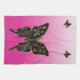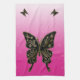 Drucken eines großen Schmetterlings aus Schwarz und Gold und zwei kleinere auf jeder Seite auf einem rosa Farbverlauf.