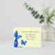 Diese kleinen Hochzeitskarten sind eine sehr wirtschaftliche Möglichkeit, Ihre Empfang-Informationen zu Ihren Einladungen hinzuzufügen, oder welche Informationen Sie Ihren Gästen zu wissen wünschen. Diese Hochzeitskarten werden in hellgelber Farbe mit hellblauen Schmetterlingen gemacht. Passen Sie den Text auf Vorder- und Rückseite an, um Ihre Bedürfnisse zu Anzug.