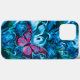 Personalisieren Sie diese einzigartige "One of a Kind" Butterfly iPhone Case! Es verfügt über einen rosa, blauen und schwarzen Schmetterling Flying zwischen schönen hellen und dunkelblauen Blume! Originelle Kunstmalerei des Künstlers Kerry Miller.