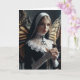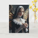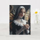 Eine Nonne mit Schmetterlingsflügeln auf ihrem Rücken hält eine Kerze leer in den jeden Anlässen und grüßt die Karte