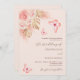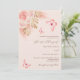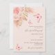 Ein pfirsichfarbener Hintergrund. Die Einrichtung besteht aus Rose-Gold und rosa Blumen, Rose, Pampas-Gras und Schmetterlingen. Personalisieren und fügen Sie Ihre Namen und Details. Zurück: pfirsichfarbener Hintergrund und ein Schmetterling.