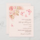Ein pfirsichfarbener Hintergrund. Die Einrichtung besteht aus Rose-Gold und rosa Blumen, Rose, Pampas-Gras und Schmetterlingen. Personalisieren und fügen Sie Ihre Namen und Details. Zurück: Fügen Sie Ihre Hochzeitswebsite url zum QR-Code für Details und/oder UAWG.