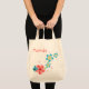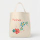 Schmetterling auf Blume © Sunny Mars Designs. Diese süße, niedliche Bio Einkaufstüte bietet einen grafischen Cartoon-Vektor-Abbildung Blumendesign eines abstrakten Schmetterlings sitzend auf einem rosa Hibiskus tropische Blume mit anderen blauen und gelben Farbtupfer wie Blume oben. Personalisieren Sie es, indem Sie ihm Ihren eigenen Namen oder einen anderen Text hinzufügen.