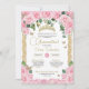 Alle Texte können für jeden Anlass bearbeitet werden. Rosa Rosen, rosa Blumen, elegante Rosa und Gold Quinceanera Einladung, rosa Quitte, rosa Blumen Geburtstagseinladung.
