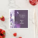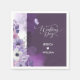 Elegant purple floral wedding napkins featuring soft watercolor flowers in lavender, blush, and white, accented with delicate botanical line art and a graceful butterfly. The rich plum background creates a romantic and sophisticated look, making these napkins a beautiful choice for wedding receptions, cake tables, cocktail bars, dessert displays, and bridal events. Perfect for couples creating a coordinated floral wedding décor and stationery suite.