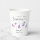 Romantischer und süßer Brautparty-Papierbecher mit Aquarellbildern für rosa und lila Schmetterlinge. Im Text steht "ein Leben voller Schmetterlinge".