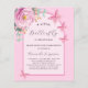 Ein rosa Hintergrund mit einem Bogen. Die Einrichtung besteht aus rosa Blumen, Blume der Rose, grünem Eukalyptusgrün und Schmetterlingen. Personalisieren und fügen Sie den Namen der Mutter zu sein und Party-Details. Text: Ein kleiner Schmetterling ist auf dem Weg. 1 Blatt = 1 Einladung mit Druckkante bis Kante.