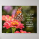 Original Foto eines fritilischen Schmetterlings aus dem Golf mit einer blühenden Zinnia-Blume. Bibelschrift von 2 Korinther 5:17 ist auf der Vorderseite enthalten.