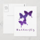Drei lila Schmetterlinge entwerfen Postkarte.