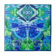Keramik Kachel in einem digitalen Batik großen Schmetterling auf einem verzierten, arabischen Medaillon, in den Farbtönen Kobaltblau, Türkis und Jadegrün
