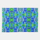 Teetücher in einem digitalen Batik-Muster aus großen Schmetterlingen auf einem verzierten, arabischen Medaillon in Kobaltblau, Türkis und Jadegrün