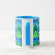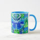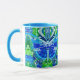 Kaffeemaschine in digitaler Batik-Tasse mit großen Schmetterlingen auf verziertem, arabesken Medaillon in Kobaltblau, Türkis und Jadegrün