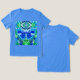 T-Shirt in einem digitalen Batik-Muster von großen Schmetterlingen auf einem verzierten, arabischen Medaillon, in Kobaltblau, Türkis und Jadegrün