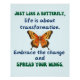 Butterfly Weisheit: "Genau wie ein Schmetterling geht es im Leben um Transformation. Nimm die Veränderung an und spreiße deine Flügel aus." Dieses Zitat Staaten, dass das Leben voller Herausforderungen und Rückschläge ist. Genau wie ein Schmetterling, der Hindernisse überwinden kann, um sein Ziel zu erreichen, kann man Widrigkeiten überwinden und stärker hervortreten.