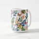 Ein lebendiges, nahtloses Muster, das aus zarten Schmetterlingen, fließenden Blätter und abstrakten Formen besteht.