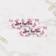 Butterfly'Just For You'Gastgeschenk Hochzeit Geschenktag, mit dem die Worte "Just For You" in einem extravaganten Wirblen Schriftart. Die Brautnamen und das Hochzeitsdatum werden unter der Nachricht gedruckt.Hinter dem Text steht ein Hintergrund aus rosa und lila Schmetterlingen. Sie können Ihre eigene Danksagung oder eine andere Formulierung hinzufügen. Es stehen auch alternative Papiere und Farben zur Verfügung. Sie müssen ein Loch in einer Kartenecke mit einem Papierstapel durchstechen, durch ein Band und eine Krawatte zu Ihrer Gunst ziehen.