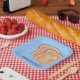Schmolzene Butter auf Toast ist so köstlich, und jetzt können Sie dieses Lieblings-Frühstücksbrot mit Ihrer Textauswahl personalisieren. Der blaue Hintergrund ist ebenfalls anpassbar, also ändern Sie ihn nach Ihrem eigenen Farbmotiv.
