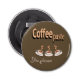 Button Bottle Opener, Titel Coffee Paste, ein lustiger Coffee Copy Paste Pun, mit einer Kopie von drei Kaffeetassen und ein "Ja bitte" Anfrage an den unteren, braunen Hintergrund