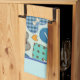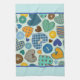 Ein schönes blaues Küchentuch in einem Muster aus Tasten und Herz