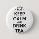 Auf die Person stimmt Button, keep calm and drink tea ,(mantenha ich ruhig und trinkt Tee).