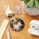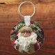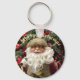 Dieser feierliche Schlüsselanhänger mit einem fröhlichen, rosigen, hektischen Weihnachtsmann vor Weihnachtsblättern und dem aufbereitbaren Text "Frohe Weihnachten "Perfekt als saisonales Accessoire, Geschenk oder kleine Geschenke.