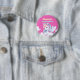Button to a magical birthday party with an adorable unicorn with wings in the clouds.