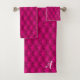 Die Badehandtücher sind kühn, auffallend und sehr rosa.............................................................................................................................................................................................................................................. Es ist heiß rosa, gürtelige Imitat Button getupft Design fügt etwas Glanz in Ihrem Bad. Sie enthalten auch Ihren Monogramm-Brief in weiß.