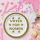 Dieses sechssterne Button repräsentiert die Anzahl der Staaten, in denen Frauen zum Zeitpunkt seiner Gründung das volle Wahlrecht hatten: Wyoming (1869), Colorado (1893), Utah (1896), Idaho (1896), Washington (1910), Kalifornien (1911)
