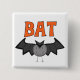 Ein schwarzer Halloween-Fledermaus und ein orangefarbener Text, der auf Fledermaus-T - Shirt, Karosserietexten, Tasse, Karten, Aufklebern, Totttaschen, Buttons, Magneten und anderen Halloween-BAT-T - Shirt und -Geschenken "BAT" liest.
