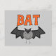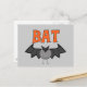 Ein schwarzer Halloween-Fledermaus und ein orangefarbener Text, der auf Fledermaus-T - Shirt, Karosserietexten, Tasse, Karten, Aufklebern, Totttaschen, Buttons, Magneten und anderen Halloween-BAT-T - Shirt und -Geschenken "BAT" liest.
