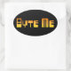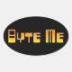 Byte Me - schwarzer Aufkleber mit orangefarbenen Techie-Schriftzeichen.