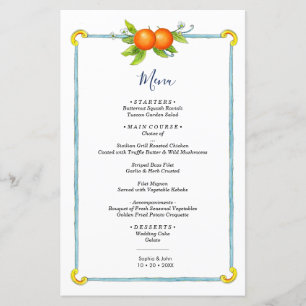 Menü-Karte für Wasserfarben und Orangen